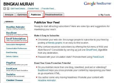 Untuk daftar feedburner, silahkan buka situs feedburner